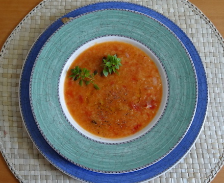 - Ajouter tous les autres ingrédients y compris le bouillon et laisser mijoter jusqu’à ce que la soupe soit liée et onctueuse.