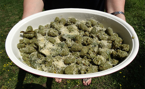 - Asperger les Malfatti de beurre fondu, les saupoudrer généreusement de fromage et les servir sans attendre