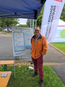 Petit matin de crachin à Échallens en ce 24 septembre. Mais ce n’est pas les petites pluies d’automne qui vont venir rincer l’énergie des bénévoles de la FRC Vaud. Le thème général de la manifestation porte sur le développement durable. La FRC travaillant de longue date sur les différentes manières de préserver toutes les ressources autour des biens de consommation, le propos du stand FRC Vaud est de circonstance: retrouver (ou rafraîchir) les conseils et bons gestes pour conserver les aliments, notamment les plus périssables: les fruits et légumes. Il est temps d’infléchir la statistique actuelle dans le bon sens: en Suisse, chaque habitant jette à la poubelle 90 kg par an de nourriture. C’est trop!