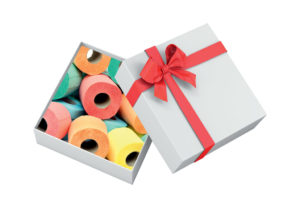 Ce sont des cadeaux plutôt ironiques, et réservés à un certain public, mais tout le monde a besoin de renouveler chaussettes et papier de toilette, n’est-ce pas?