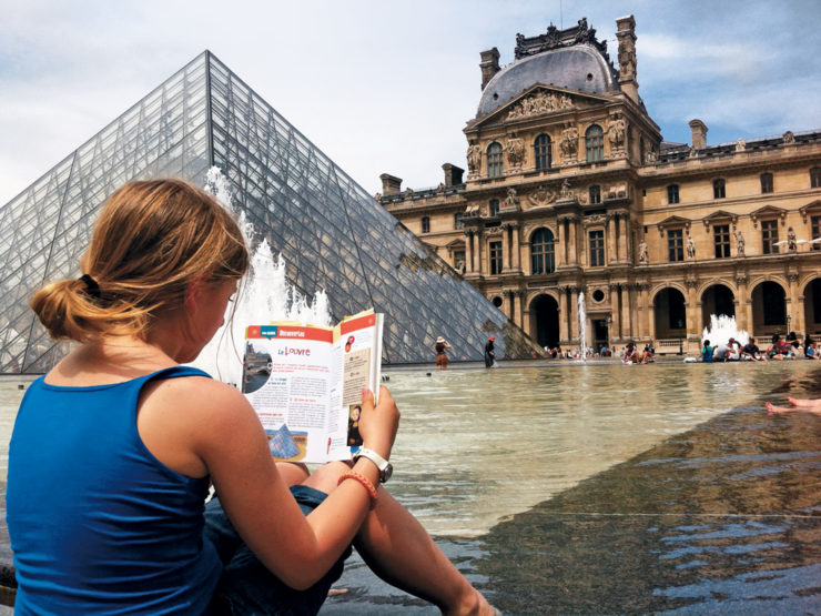 Le point de vue de Zoé: «J’ai aimé faire mon programme. D’abord j’ai lu et collé des post-it sur mes pages préférées, après on est allé voir pour de vrai, c’était top. Des fois, y a des histoires rigolottes ou des quiz, par exemple pour nous apprendre pourquoi les bateaux-mouches s’appellent comme ça à Paris. Sur la butte Montmartre, j’ai fait le jeu de piste qui était dans le guide, même toute seule avec les parents, je me suis bien amusée. Et puis, tous les soirs, j’ai écris ma journée, ça me fera des souvenirs quand je serai grande si j’oublie. Par contre, dans Paris, ils ont oublié la Cité des Sciences, c’est nul pour un guide pour enfants! Et puis quand on est triste de repartir, le guide nous donne des idées de livres à lire ou de film à voir pour prolonger le voyage. Mais mo,i j’ai déjà dit que je veux revenir, parce que j’ai pas eu le temps de tout faire: quand il fera moche, on fera les musées!»
