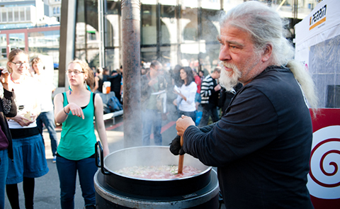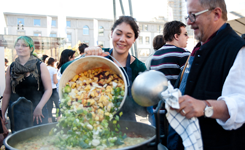 Phénomène venu d’Allemagne, visant à sensibiliser le public au gaspillage alimentaire, les disco-soupes sont notamment très populaires en France. Première sur le sol vaudois, la disco-soupe lausannoise était organisée conjointement par Slow Food et Unipoly, avec la participation de la FRC.