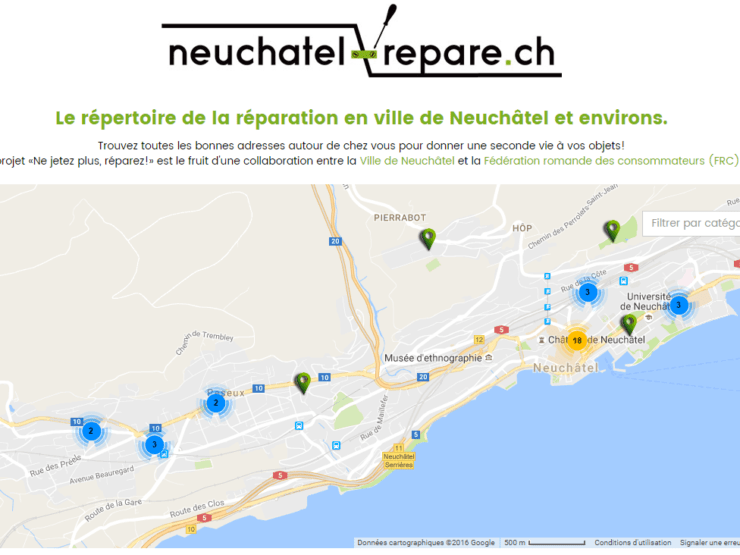Pour faciliter la navigation, la plate-forme neuchâteloise a la particularité de regrouper ces adresses sur une seule et même carte, accessible depuis la page d’accueil. Tout comme ceux de ses grands frères, ce répertoire est appelé à évoluer et à intégrer les adresses suggérées par les internautes via le formulaire de contact. Le site regorge en outre de conseils et de liens utiles sur le thème de la réparation ou du partage d’objets, toujours dans l’objectif de prolonger la durée de vie des biens de consommation.