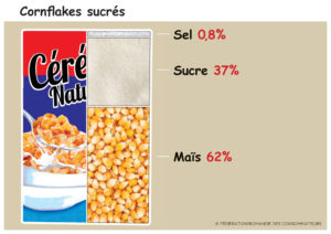Trop de sucre, trop de gras, trop de sel… Quelques exemples édifiants qui touchent particulièrement les jeunes au moment du petit-déjeuner ou comme collation.