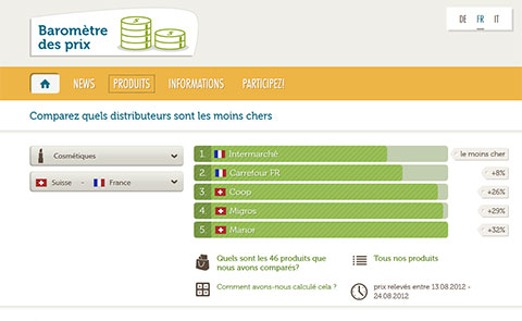 La plate-forme de comparaison des prix est en ligne! L'idée: informer le consommateur des différences de prix substantielles par rapport aux pays limitrophes, une transparence qui vise à mettre la pression sur les distributeurs.