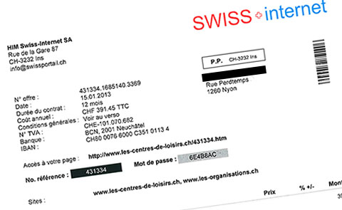 Le Tribunal régional Jura bernois-Seeland a rendu le 2 octobre une ordonnance pénale définitive pour infraction à la Loi contre la concurrence déloyale à l’encontre de la société bernoise HIM Swiss-Internet SA, basée à Ins, qui édite l’annuaire Swiss-Internet. Il est reproché aux organes de cette entreprise d’avoir envoyé des factures avec bulletin de versement sans mandat ni commande préalable.