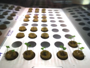 Une fois les engins déballés et les graines déposées en mai dernier, personne n’y croyait franchement. Et pourtant, en quelques jours à peine, certaines ont commencé à germer (1) . Deux semaines plus tard, basilic, persil, roquette, feuilles de moutarde, amarante et tomates cerises se sont mis à croître, chacun à son rythme (2) . Les premiers temps ont ainsi été réjouissants (3) . D’autant plus que le travail est minime pour obtenir un résultat: vérifier que l’eau est toujours à niveau, et ajouter des nutriments au bon moment. Point.