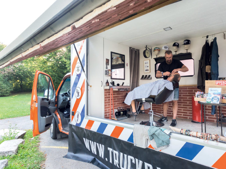 Depuis quelques années, les food trucks se sont imposés, occupant les marchés, les parkings et les festivals. Plus discrets, d’autres proposent désormais des livres, de la retouche d’habits, des cosmétiques et les services d’un barbier… toujours sur roues. En Suisse romande, ils sont une poignée. Ainsi, Geraldine Imhof, près d’Yverdon-les-Bains (VD), prépare des produits de soin maison qu’elle trimballe dans sa Boutik’Atelier. Il y a aussi la librairie itinérante des Mille Lieux d’Isabelle Ecklin ou celle du Rat Conteur dans le canton de Neuchâtel. Dans le même coin de pays, Jean-Pierre Mur balade son barber truck.