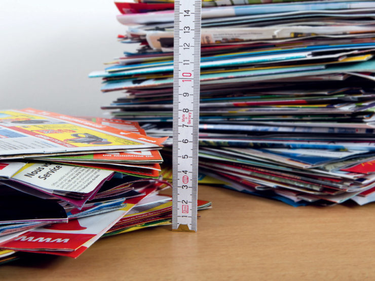 L’an dernier, la FRC avait mené une opération de grande envergure, demandant à des enquêteurs de toute la Suisse romande de conserver, mesurer et peser la publicité reçue durant un mois. Les résultats étaient effarants, puisque jusqu’à 5 kilos de prospectus et flyers divers avaient été comptabilisés par ménage.