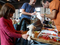 Au Repair Café Fribourg/Freiburg, on se targue d’accepter aussi des objets qu’on a moins souvent l’occasion de croiser dans ce genre de manifestation grand public. Pas de ségrégation dans la devise Réparer au lien de jeter! La preuve en images.