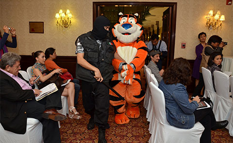 Après des années à vendre des hamburgers, des frites et des «sucréales» de petit déjeuner aux enfants du monde entier, Ronald McDonald et Tony, le Tigre de Frosties, arrivent à Genève à l’Assemblée mondiale de la Santé. Ils souhaitent s’excuser de leur passé et débuter une nouvelle carrière. Les délégués et le public pourront leur suggérer des reconversions via Twitter #jobs4RonandTony.
