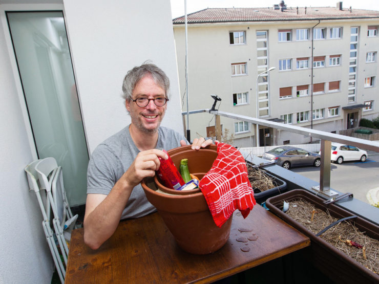 Je me lance à mon tour, non sans scepticisme, évidemment en été pour augmenter la difficulté. Le laps de temps est suffisant pour éprouver quelques astuces, mais trop court pour mesurer une quelconque économie sur la facture d’électricité. Garder des légumes, un peu de lait pour le café du matin et quelques boissons au frais me semble essentiel. Après des recherches, je trouve comment bricoler un «frigo du désert». [Mode d’emploi dans notre série Do it yourself] Je prends deux pots en terre, dont l’un de diamètre plus petit, que j’emboîte l’un dans l’autre. Dans l’espace entre les pots, j’ai versé du sable mouillé, puis couvert le dispositif d’un linge épais et humide. L’évaporation va pomper la chaleur à l’intérieur du pot et créer du froid. Je suis très agréablement surpris par l’efficacité de ce nouveau frigo. Plus il fait chaud et sec sur le balcon, plus l’intérieur du pot est froid.