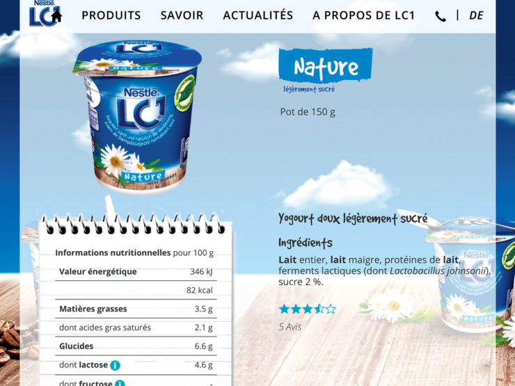 Il n’est pas normal de devoir retourner le produit et de chercher une dénomination pour connaître la nature exacte d’une denrée, alors que la face avant suggère autre chose. La FRC a déjà réussi à faire admettre à Nestlé qu’il fallait ajouter le mot «sucré» sur la face avant des emballages des yogourts à la grecque et des LC1 nature. Notre association est également intervenue auprès du groupe ELSA (Migros) à propos de son yogourt Excellence nature. Lors de la prochaine rencontre avec l’Office fédéral de la sécurité alimentaire et des affaires vétérinaires, la FRC va une nouvelle fois aborder la nécessité d’un étiquetage utile et compréhensible et plaider pour que ces yogourts portent comme dénomination «nature sucré».