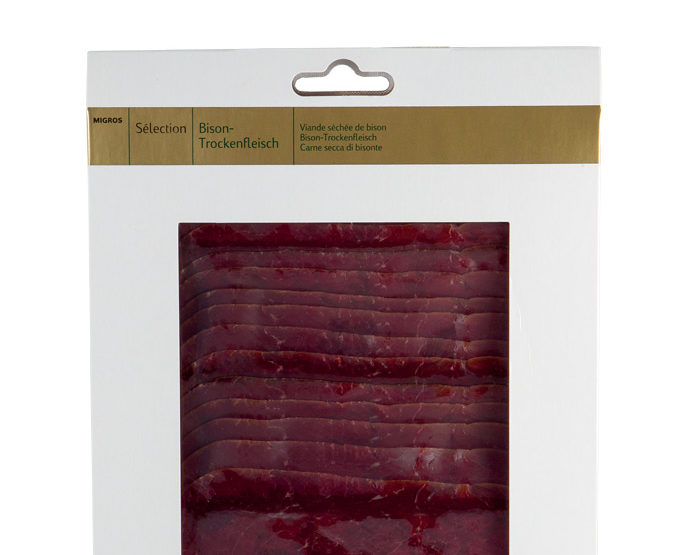 Un emballage très classieux pour une denrée qui devrait l’être tout autant: de la viande séchée de bison. Ce produit, inscrit en lettres dorées, fait rêver aux grandes contrées du Far West, aux plaines grasses où broutent de paisibles ruminants, pourvoyeurs de viande et de peau pour les Indiens d’Amérique du Nord. Sauf que ça c’est dans les livres: la réalité n’a rien à voir avec le monde de Yakari. Ces animaux majestueux ne paissent plus librement, ils sont élevés pour être rentables. Du coup, leur croissance est accélérée à l’aide d’antibiotiques.