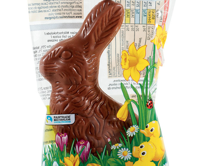 Portion | Qui dit chocolat dit riche en sucres et en graisses, forcément. Alors, pour répondre aux gens soucieux de compter les calories, les fabricants ont inventé une parade: l’étiquetage nutritionnel par portion. Sauf que cette notion est toute relative pour le client, et fixée arbitrairement par l’industriel. Dans le cas de notre lapin, elle fluctue entre 16,7 g et 25 g selon la marque. Ne mangerez-vous que la tête ou la queue pour respecter les valeurs préconisées par une portion? C’est un non-sens!